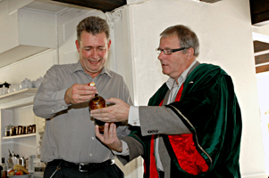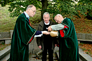 Oldermanden overrækker ægte kildevand